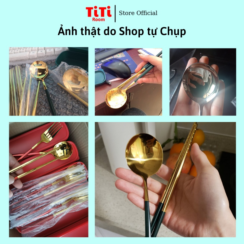 Giới thiệu Muỗng đũa thìa nĩa dao Inox 304 không gỉ mạ vàng cao Dụng cụ cá nhân ăn cơm văn phòng TiTiRoom