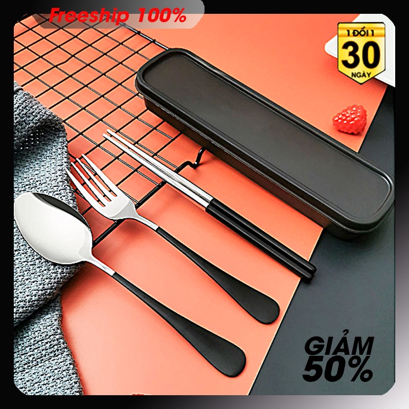 Bộ muỗng đũa văn phòng INOX thép không rỉ tráng gương phủ nhựa tay cầm - full hộp nhựa - tiện lợi mọi lúc .