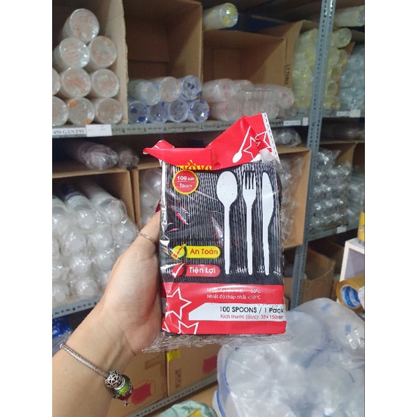 Muỗng Gia Tướng màu Đen. Bịch 100cDùng cho các quán ăn, nhà hàng, quán cơm, cháo