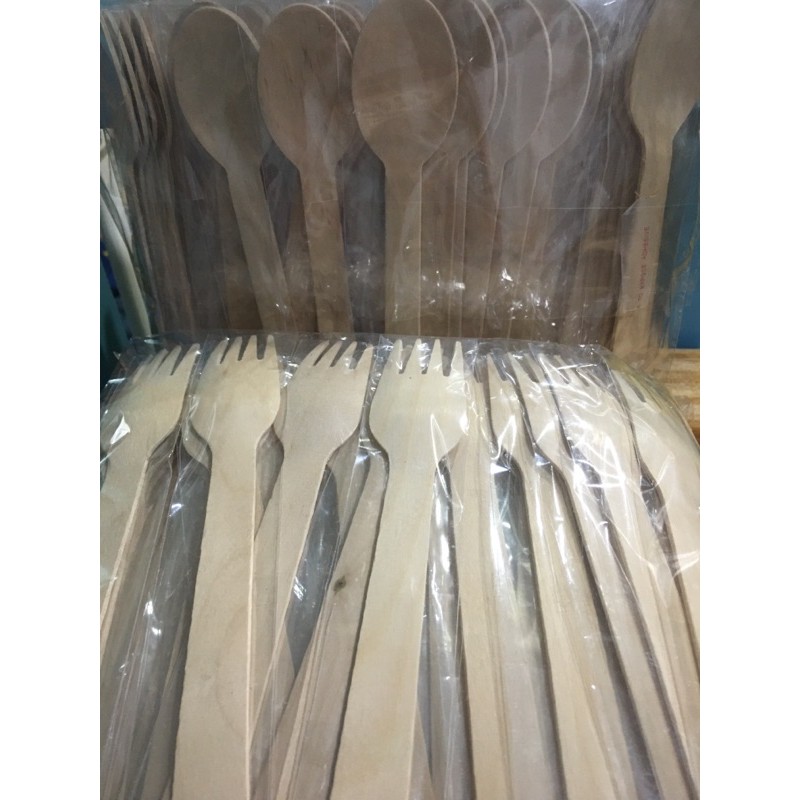 Muỗng gỗ 16cm, nĩa gỗ 16cm bọc màng (50 cái/1 túi)