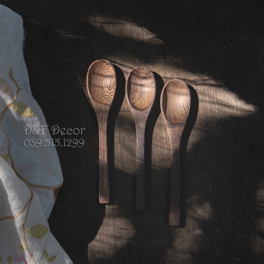 * Muỗng gỗ mun được mài láng min.
