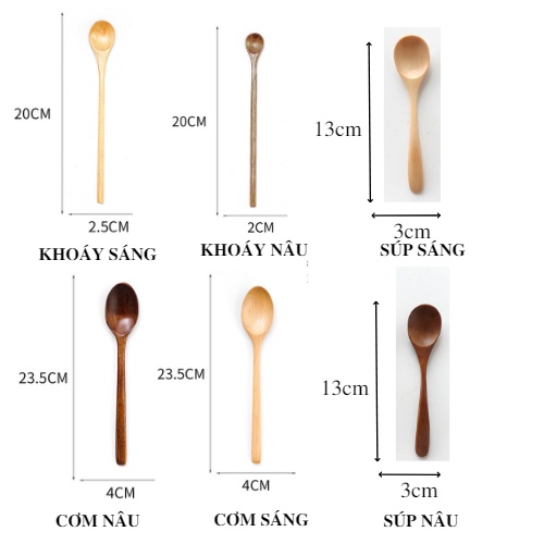 Muỗng gỗ Nhật, thìa gỗ ăn cơm cán dài miệng to phong cách tự nhiên♥️ Thông số kỹ thuật
