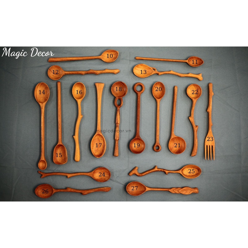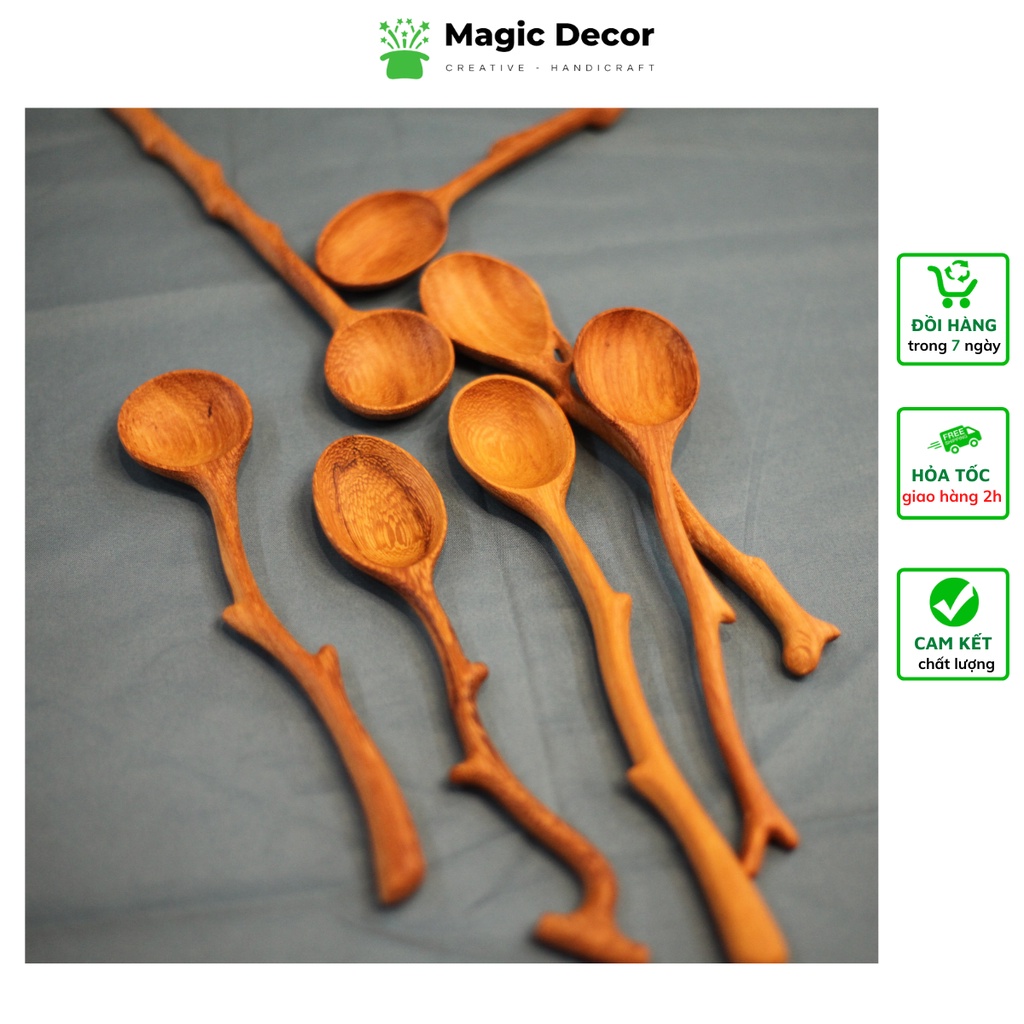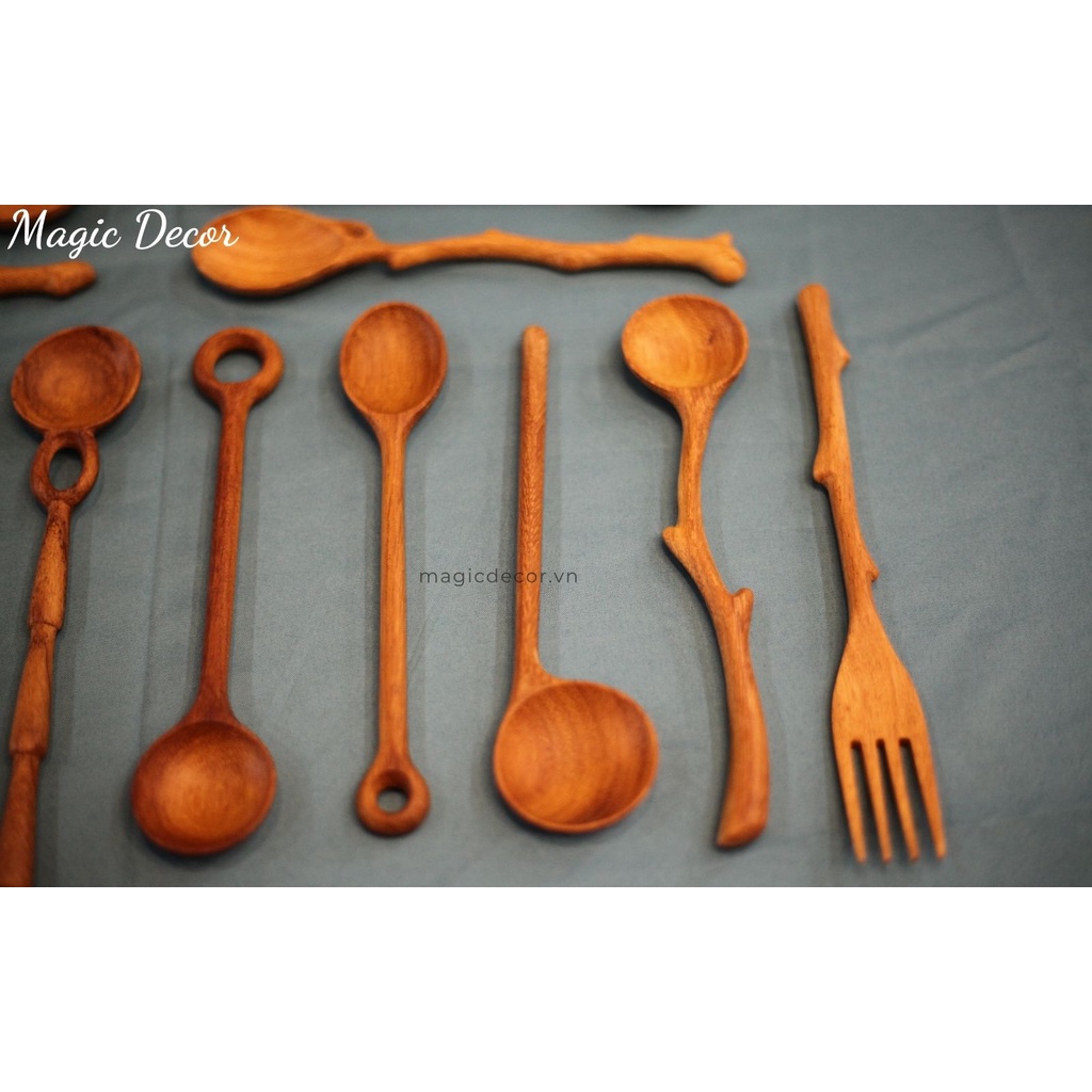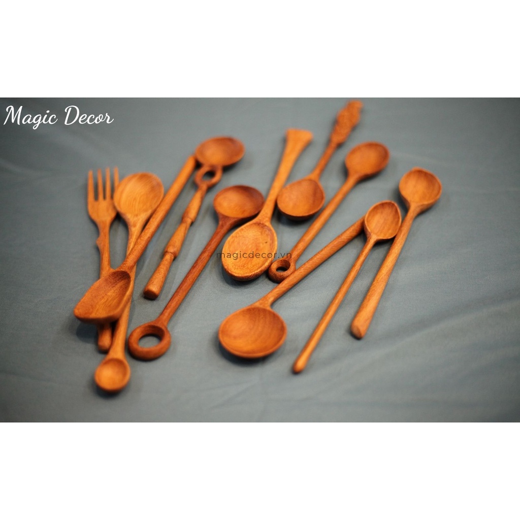 Nhà cửa & Đời sống > Bộ đồ bàn ăn > Dĩa || Muỗng gỗ, Thìa gỗ ăn cơm cán dài decor kiểu mới màu gỗ tự nhiên phong cách độc lạ | Magic DecorCòn hàng