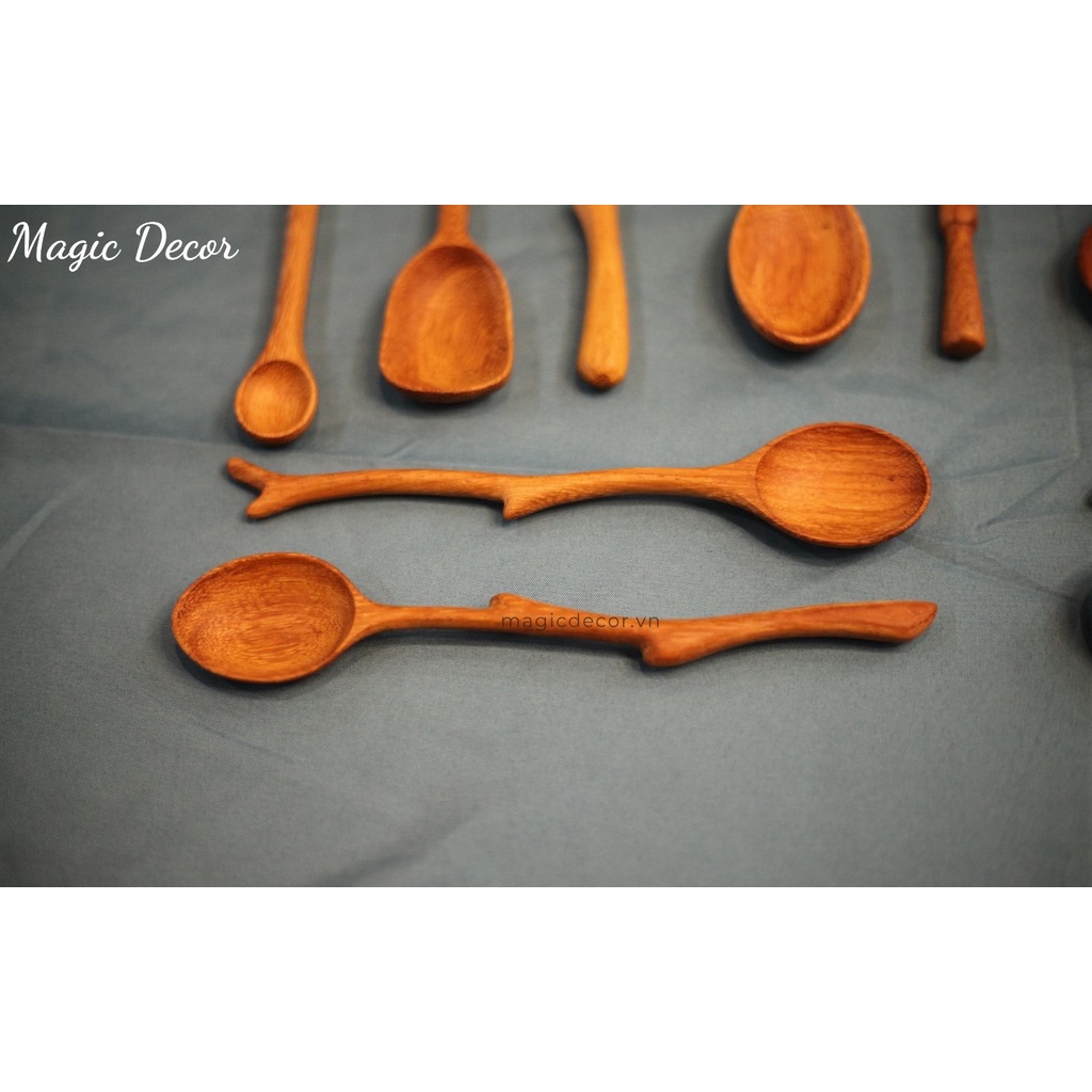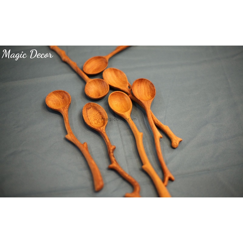 Muỗng gỗ, Thìa gỗ ăn cơm cán dài decor kiểu mới màu gỗ tự nhiên phong cách độc lạ | Magic Decor