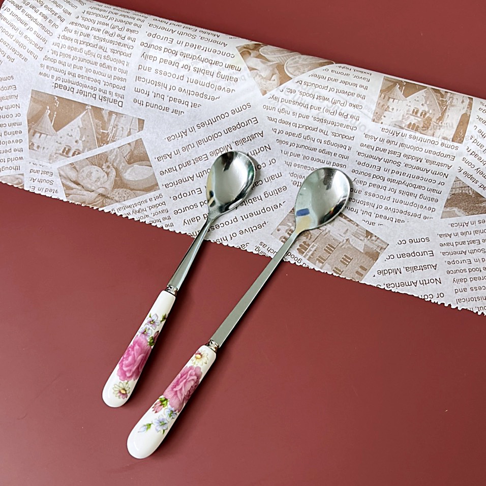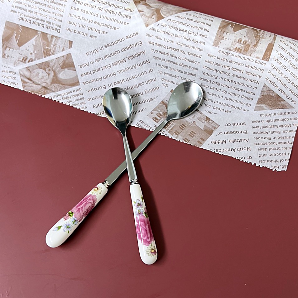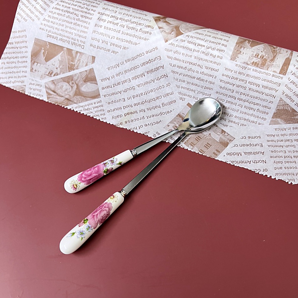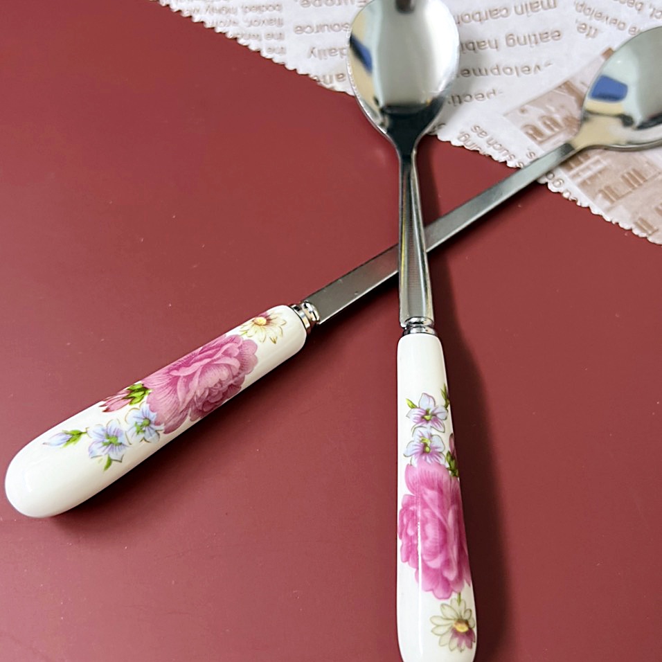 Muỗng Inox 304 Cán Sứ Hoa Hồng Sang Trọng