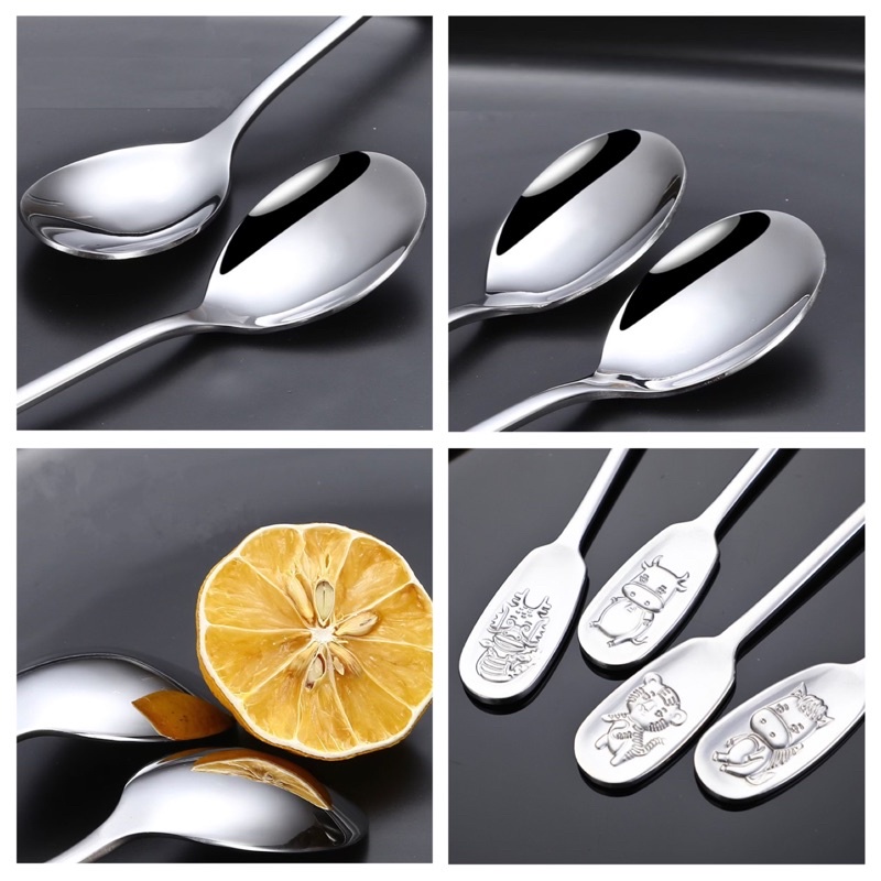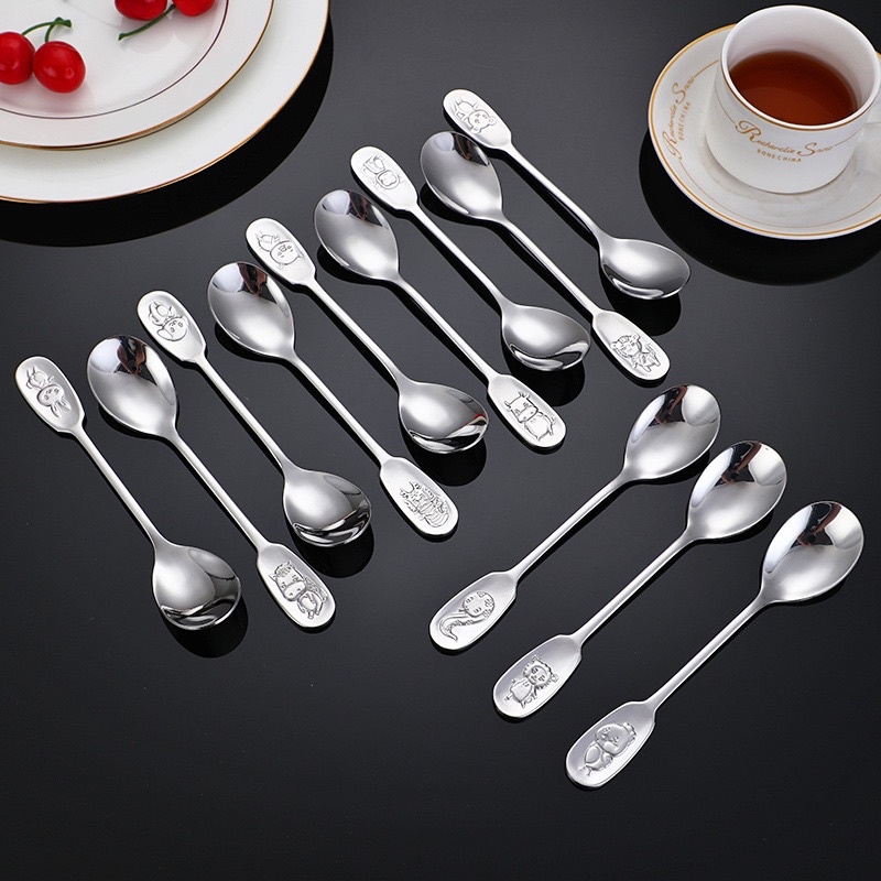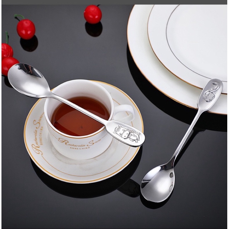 Muỗng inox cán logo hình thú 12 con giápKích thước: chiều dài 17cm*3.4cm, 41g