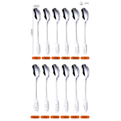 Muỗng inox cán logo hình thú 12 con giáp