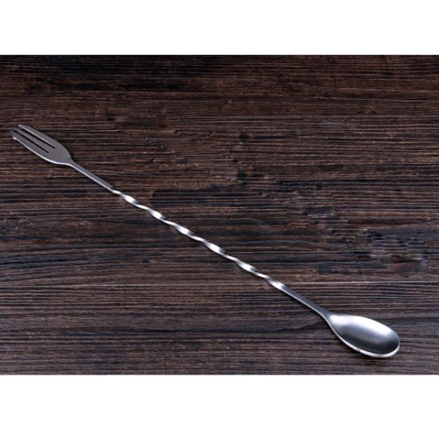 - Dụng cụ được làm bằng chất liệu inox nên rất chắc chắn và bền. Một đầu có dạng thìa dùng để khuấy cocktail, một đầu có thanh nhọn dùng để ghim trái cây.