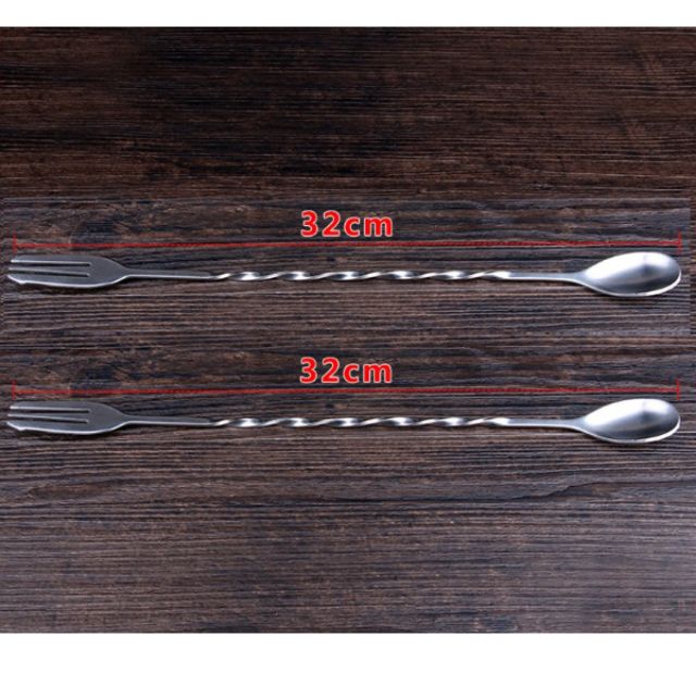 Bộ 02 Muỗng Khuấy Inox 2 đầu Pha Chế Cocktail Dài 32cm- Là muỗng dài, muỗng khuấy là dụng cụ hỗ trợ không thể thiếu trong bartender