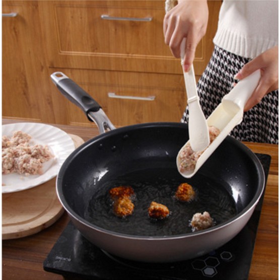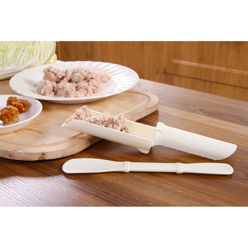 - có thể hoàn tất món ăn một phương pháp mau chóng mà không cần dùng tay.- Sau lúc đã nêm gia vị vào giết mổ băm, bạn chỉ cần dồn vào khay dài, nén chặt và dùng thìa đi kèm xắn từng viên thả vào nồi nước lèo.
