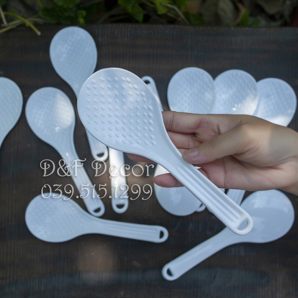 Muỗng Múc Cơm Chống Dính, Bằng Nhựa, Màu Trắng✔️ Kích thước: Chiều dài 22cm.
