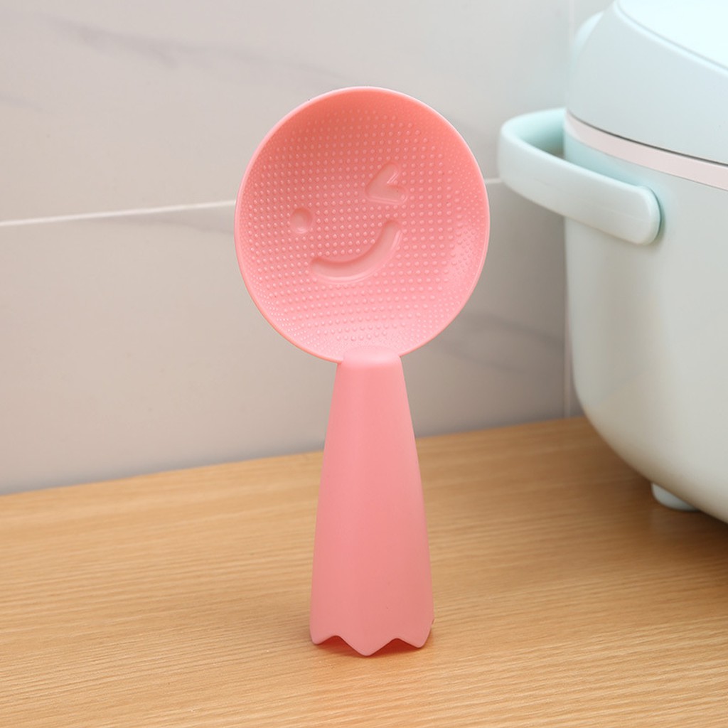 - Thiết kế muỗng hình mặt cười đáng yêu, phần để múc cơm có chấm bi nổi giúp cơm không bị rơi rớt.