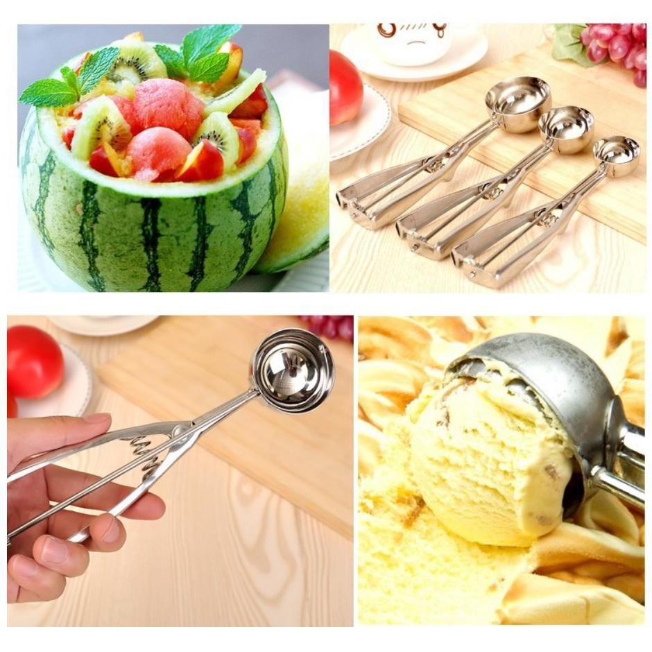 Muôi múc kem inoxCông dụng giúp bạn múc kem, hoa quả ,... thành những viên tròn và đẹp