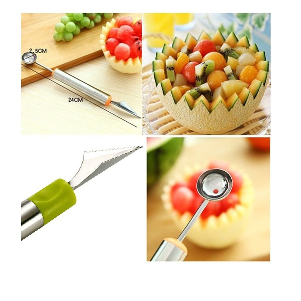 Giới thiệu Muỗng Múc Kem Tỉa Trái Cây 2 Trong 1 Loại Dài 24CM
