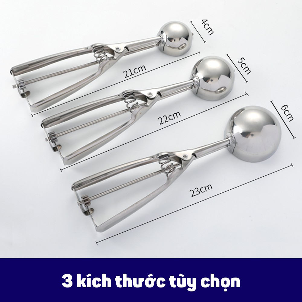 Muỗng múc kem, trái cây giúp bạn thưởng thức món ăn ngon miệng hơn. Ngày nhỏ thấy chú bán kem ốc quế múc viên kem tròn trịa, đã mắt, và ăn rất ngon. Nhưng khi tự mua hũ kem về thì ăn không ngon như vậy đúng không nào? Phượng bật mí cho các bạn nghe, chú bán kem ốc quế chính là sử dụng muỗng này để múc ra những viên kem tròn và xốp. Và nếu bạn là người mê kem giống Phượng thì ngại gì không tậu một em về cho gian bếp của mình?1. THÔNG TIN SẢN PHẨM: