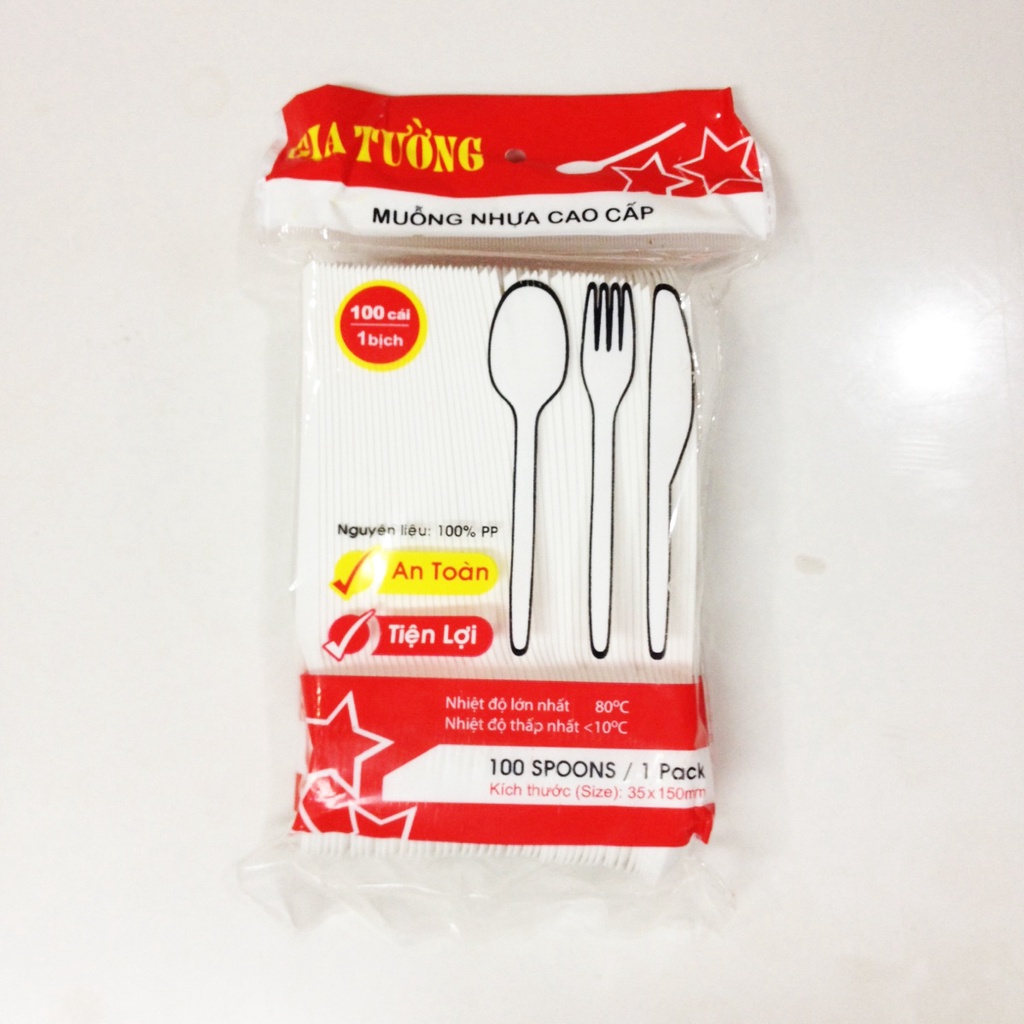 Muỗng nhựa trắng Gia Tường - Muỗng nhựa cao cấp (1 bịch 100 cái)- Muỗng cứng, đẹp, trắng sữa