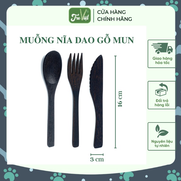 Bộ sản phẩm muỗng nĩa dao gỗ mun làm từ gỗ mun tự nhiên cao cấp. Bộ bao gồm gồm:- Một muỗng gỗ mun
