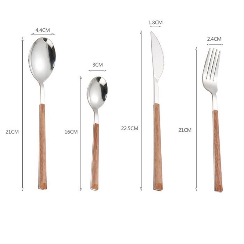 muỗng + nĩa + dao inox tay cầm nhựa giả vân gỗ cao cấp