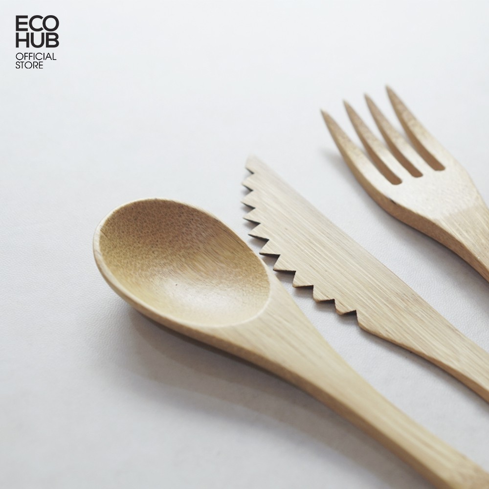 Bộ muỗng nĩa dao tre ECOHUB 16cm, Mộc Tự nhiên | EH047-----