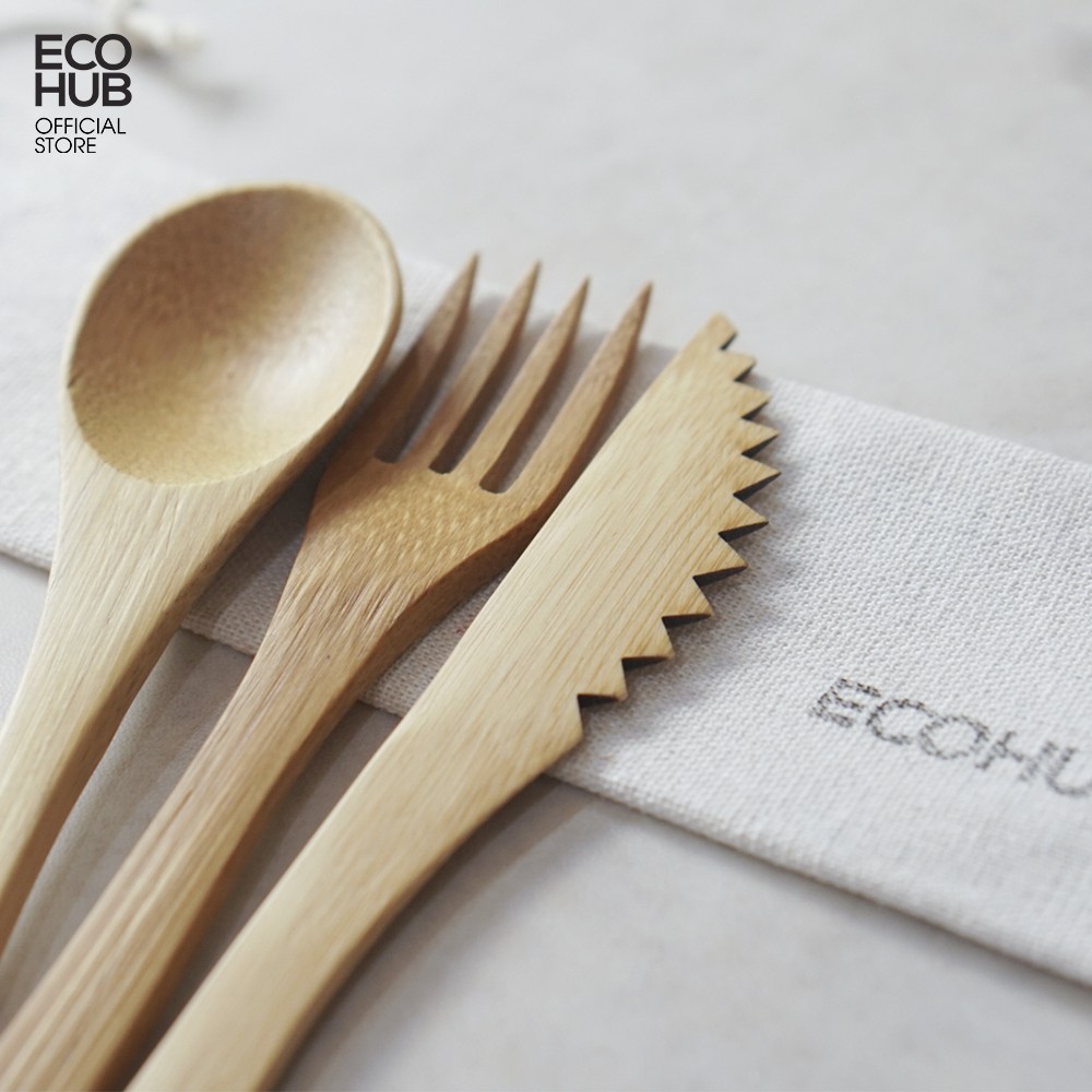 Giới thiệu Bộ muỗng nĩa dao tre ECOHUB 16cm, Mộc Tự nhiên | EH047