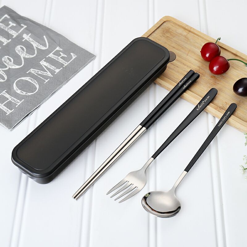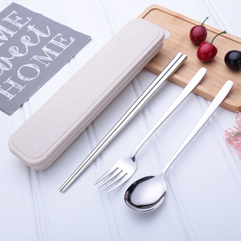 - Bộ sản phẩm gồm: 1 muỗng + 1 đôi đữa + 1 nĩa + 1 hộp đựng + 1 túi dây rút