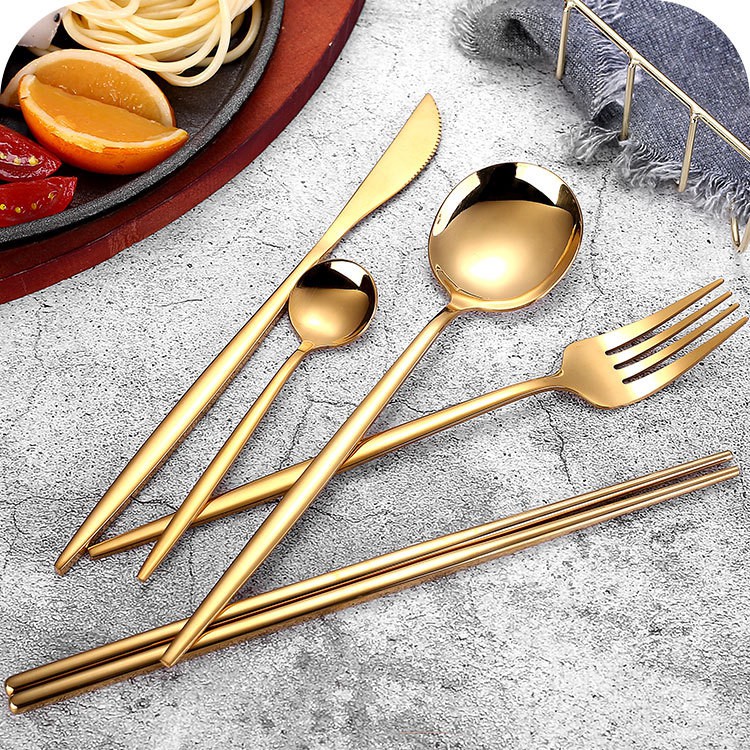 Bộ Muỗng Nĩa Đũa Vàng Gold Inox 304 Sang Trọng Cao Cấp Không Gỉ Basic Golden Cutlery
