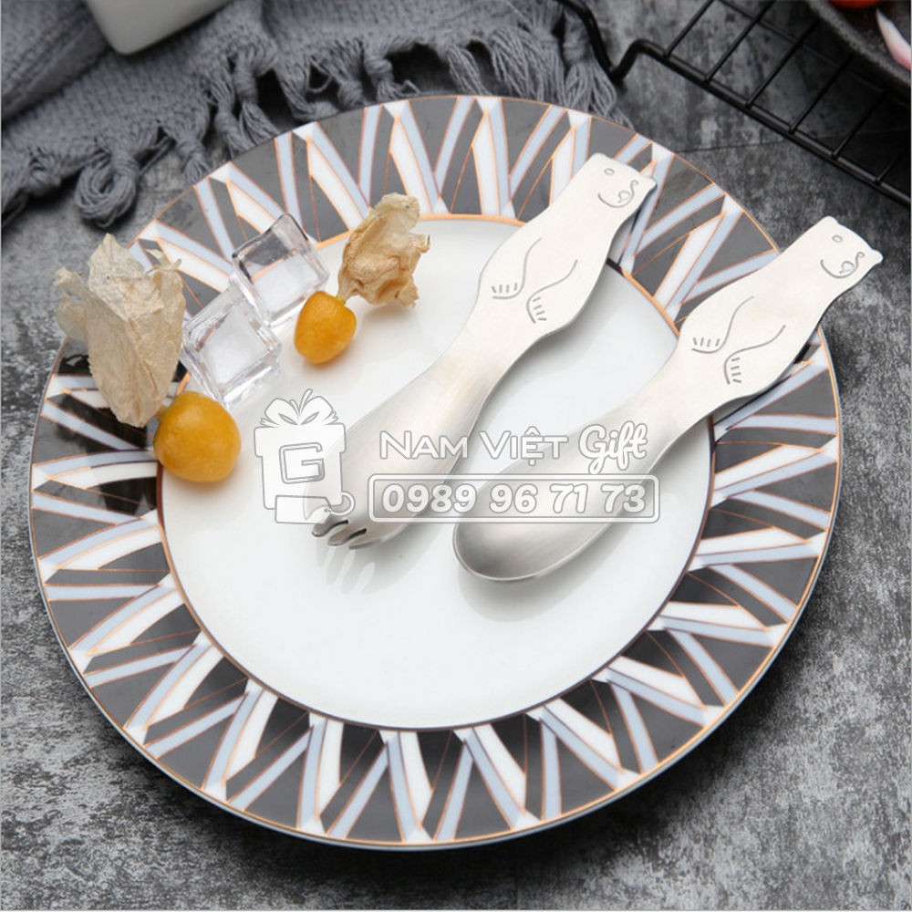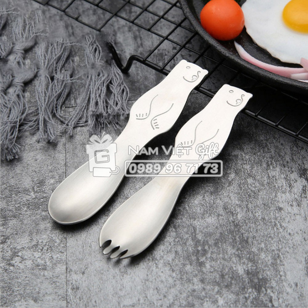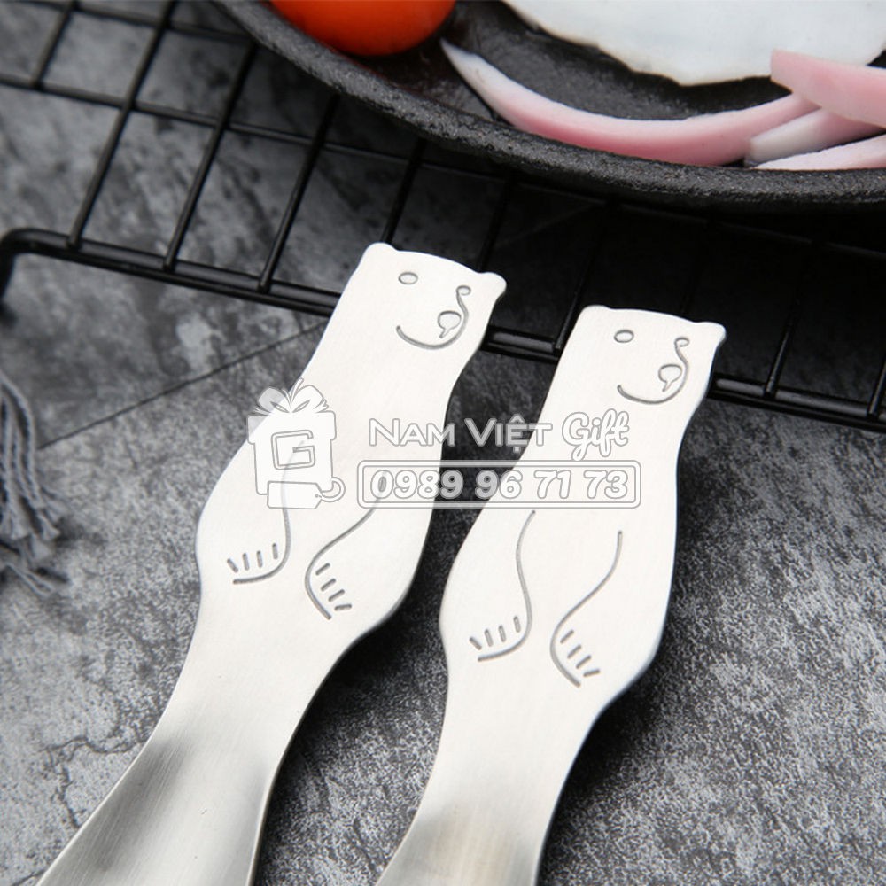 Muỗng Nĩa INOX 304 Thìa Kem Thìa Nĩa Tráng Miệng Hình Gấu