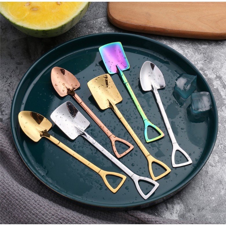 Muỗng thìa cà phê, xẻng cafe inox 304 nhiều màu pha trà, ăn bánh kem, tráng miệng phủ bóng sang trọng MTC03