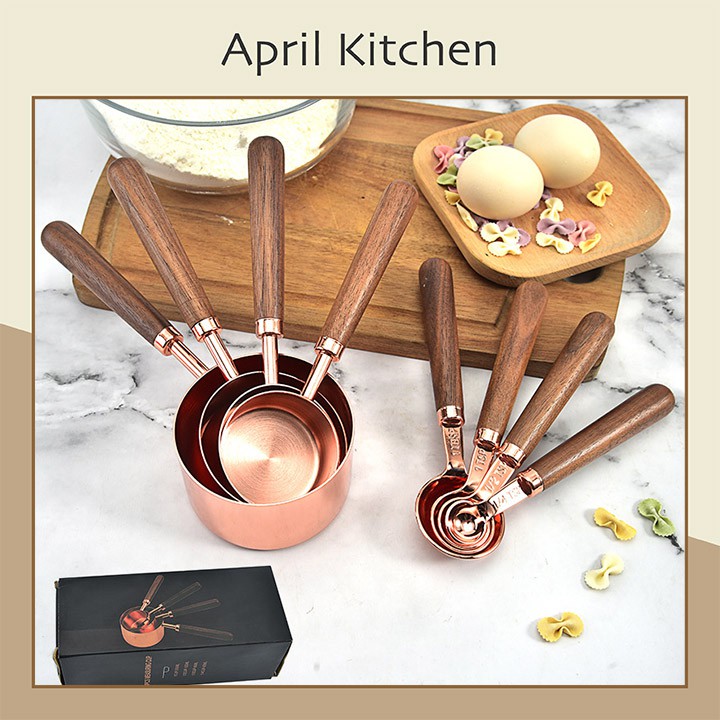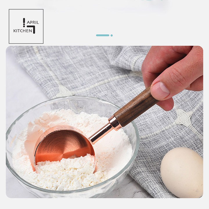 Bộ muỗng thìa đo lường cao cấp thìa đong inox mạ vàng đồng sang trọng tay cầm gỗ DCD