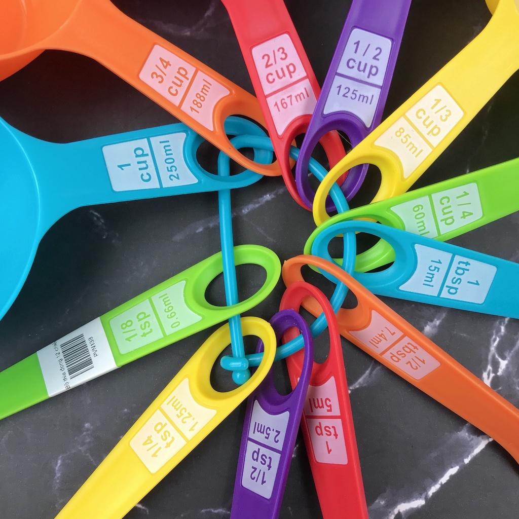 Bộ muỗng thìa đong định lượng làm bánh đủ 12 kích cỡ khi nấu ăn, trang trí nhà bếpMô tả sản phẩm bộ dụng cụ đo lường: