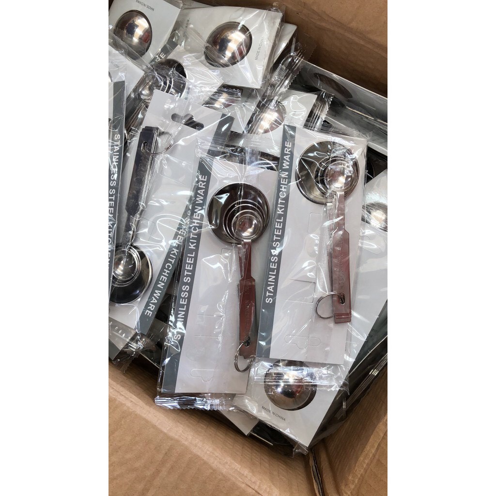 Nhà cửa & Đời sống > Dụng cụ nhà bếp > Dụng cụ đo lường || Bộ muỗng thìa đong định lượng làm bánh inox cao cấp 4 kích cỡ thông dụngCòn hàng
