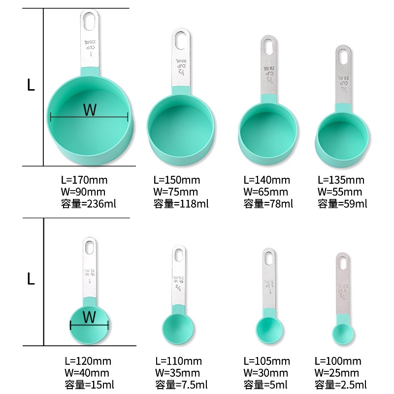 🌱🌱🌱Bộ muỗng thìa đong làm bánh đủ 8 kích cỡ khi nấu ăn, trang trí nhà bếpMô tả sản phẩm bộ dụng cụ đo lường: