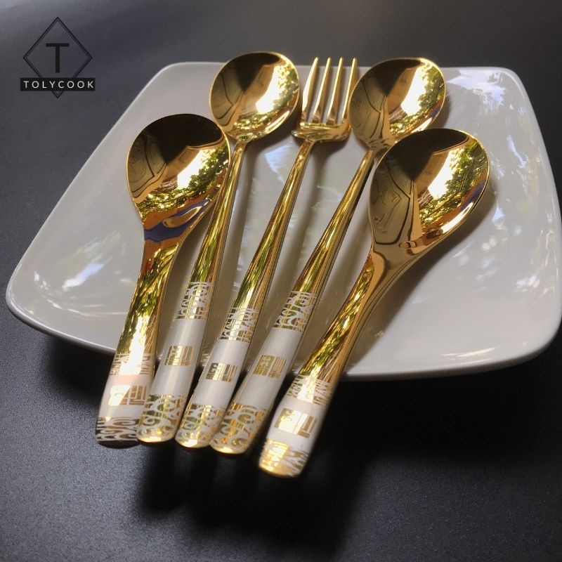 Bộ muỗng thìa nĩa muôi mạ vàng hàn quốc đẳng cấp sang trọng thanh lịch dùng trong gia đình.Đặc điểm sản phẩm