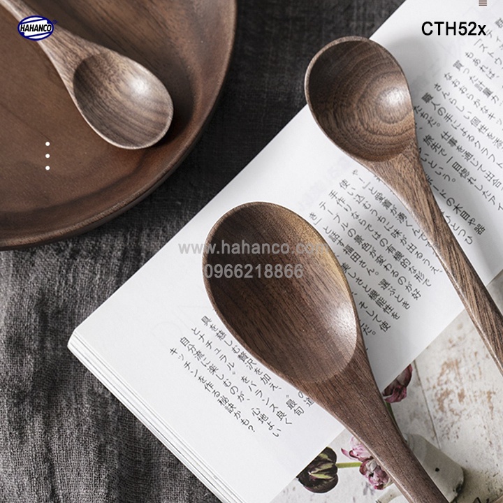 Giới thiệu Muỗng/Thìa súp gỗ Óc Chó (17cm) decor, xúc gia vị, ăn uống siêu sạch - CTH524
