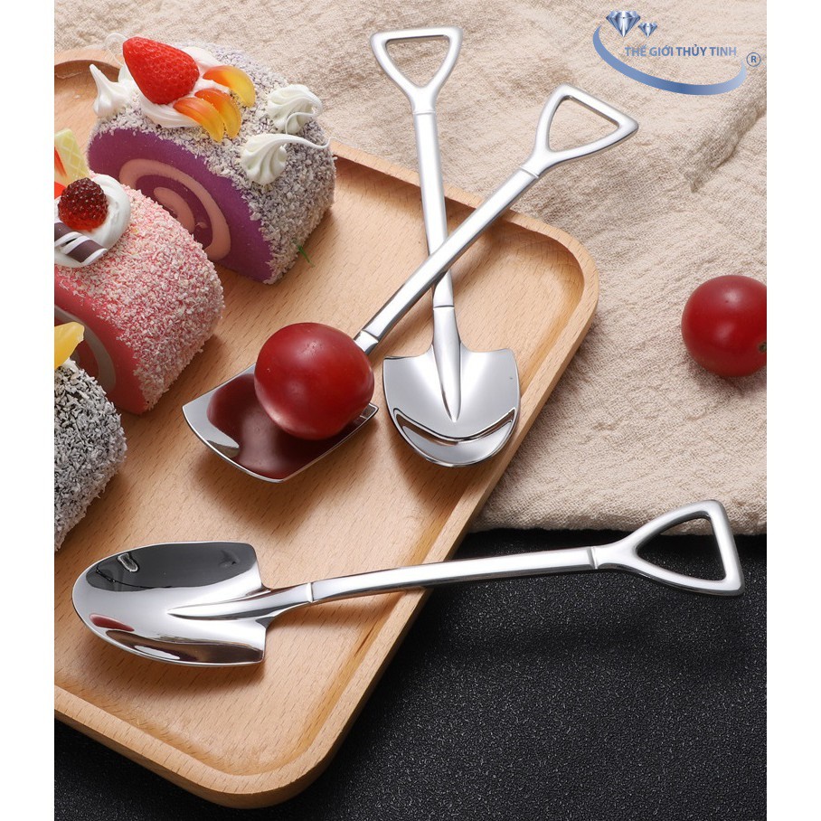 Muỗng Thìa Tráng Miệng Inox SUS 304 Thiết Kế Hình Xẻng Mini Sang Trọng Dùng Ăn Kem Bánh Trái Cây