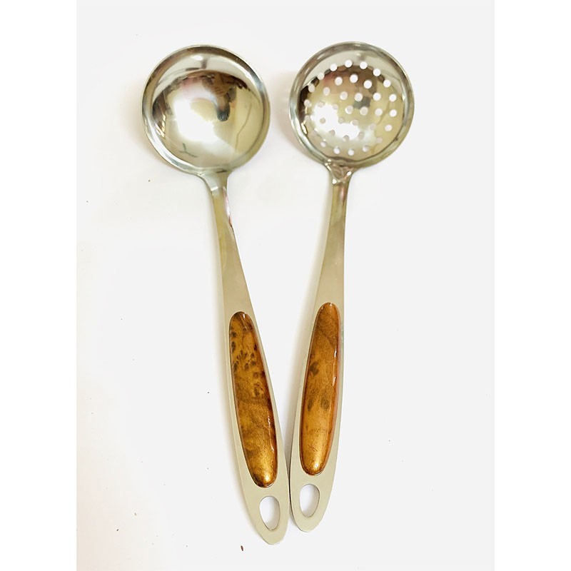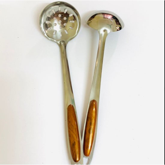 - Chiếc muỗng Thủng 12 lỗ sẽ giúp cho công việc nội trở lên tiện lợi đơn giản, bộ 3 đồng nhất màu chuôi vân gỗ và cùng kích thước sẽ tạo lên không gian bếp thật gọn gàng, sang trọng.