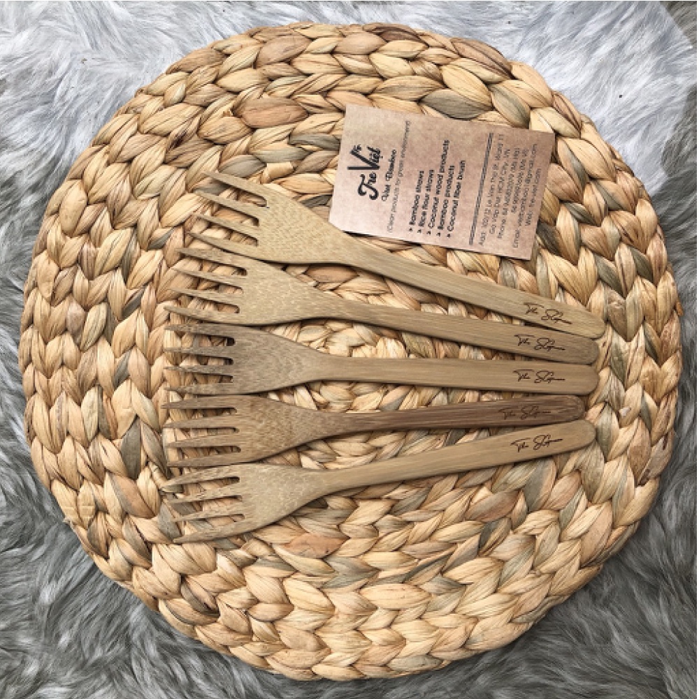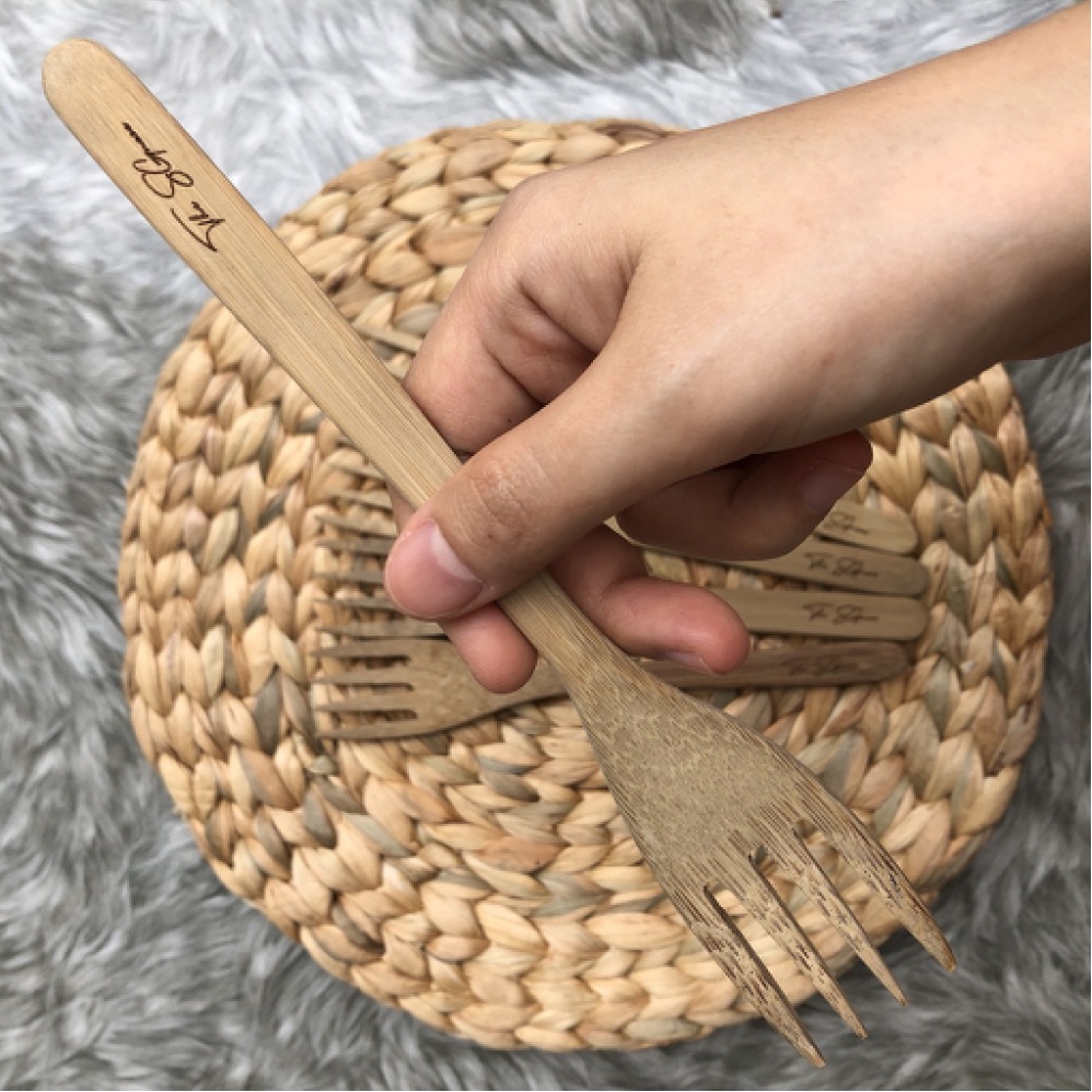 Muỗng Tre - Nĩa Bằng Tre - Dao Khắc Sẵn Logo The Sgnese | Tre Việt