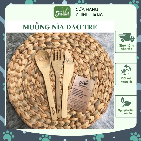 Nhà cửa & Đời sống > Bộ đồ bàn ăn > Bộ dao kéo || Muỗng Tre - Nĩa Bằng Tre - Dao Khắc Sẵn Logo The Sgnese | Tre ViệtCòn hàng