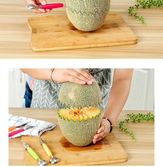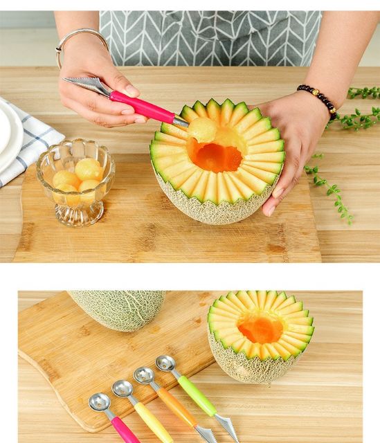 Nhà cửa & Đời sống > Bộ đồ bàn ăn > Bộ dao kéo || Muỗng tròn nạo trái cây, dao thìa khắc tỉa hoa quả 2 đầuCòn hàng