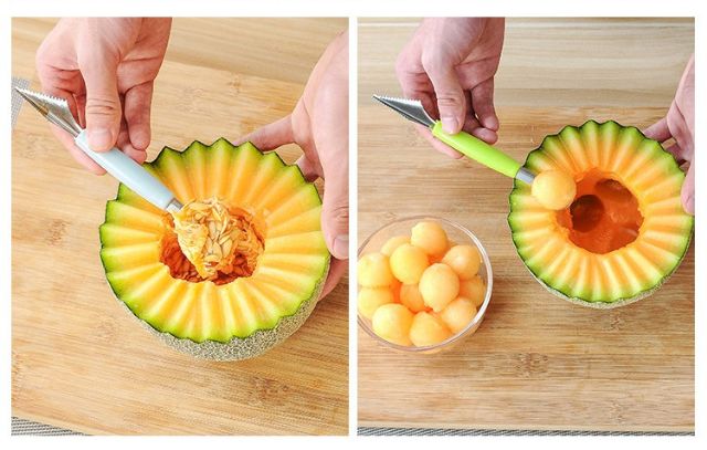 Giới thiệu Muỗng tròn nạo trái cây, dao thìa khắc tỉa hoa quả 2 đầu