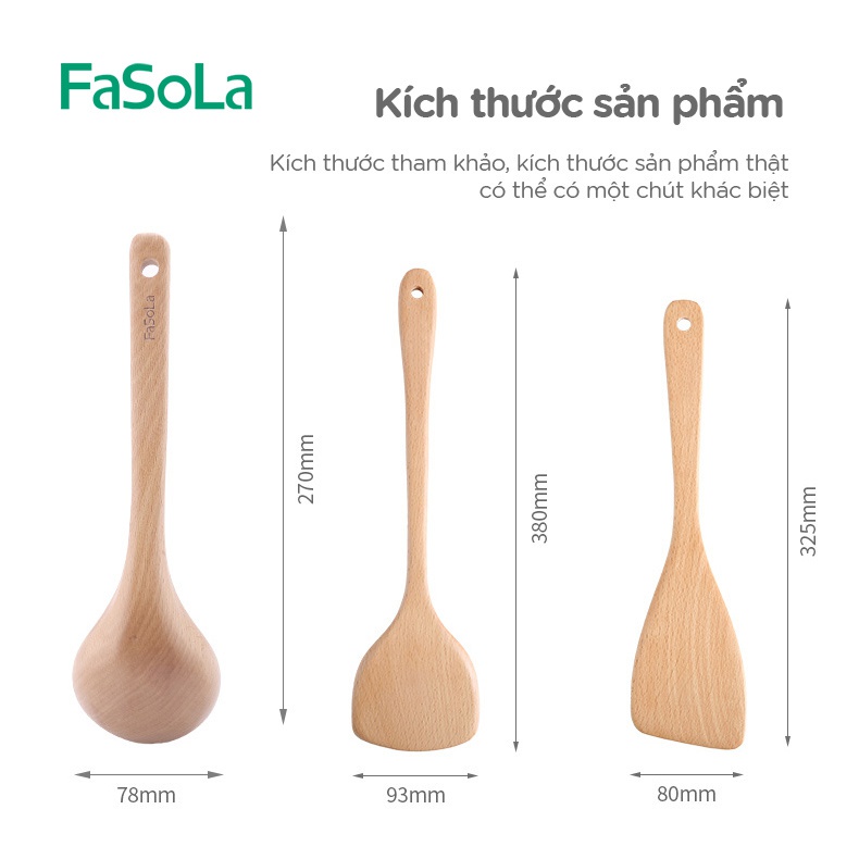 Thương chào các bạn đến với thương hiệu “FASOLA - Hàng gia dụng phong cách Nhật Bản”Tên sản phẩm: Bộ dụng cụ nấu ăn bằng gỗ sồi