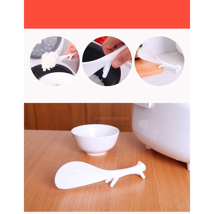 - Bàn ăn gia đình sẽ thêm sinh động với chiếc muỗng xới cơm chống dính hình con sóc tinh nghịch này . Thiết kế thông minh giúp ta có thể đặt sản phẩm trên bàn mà không làm cho phần muỗng chạm vào mặt bàn.