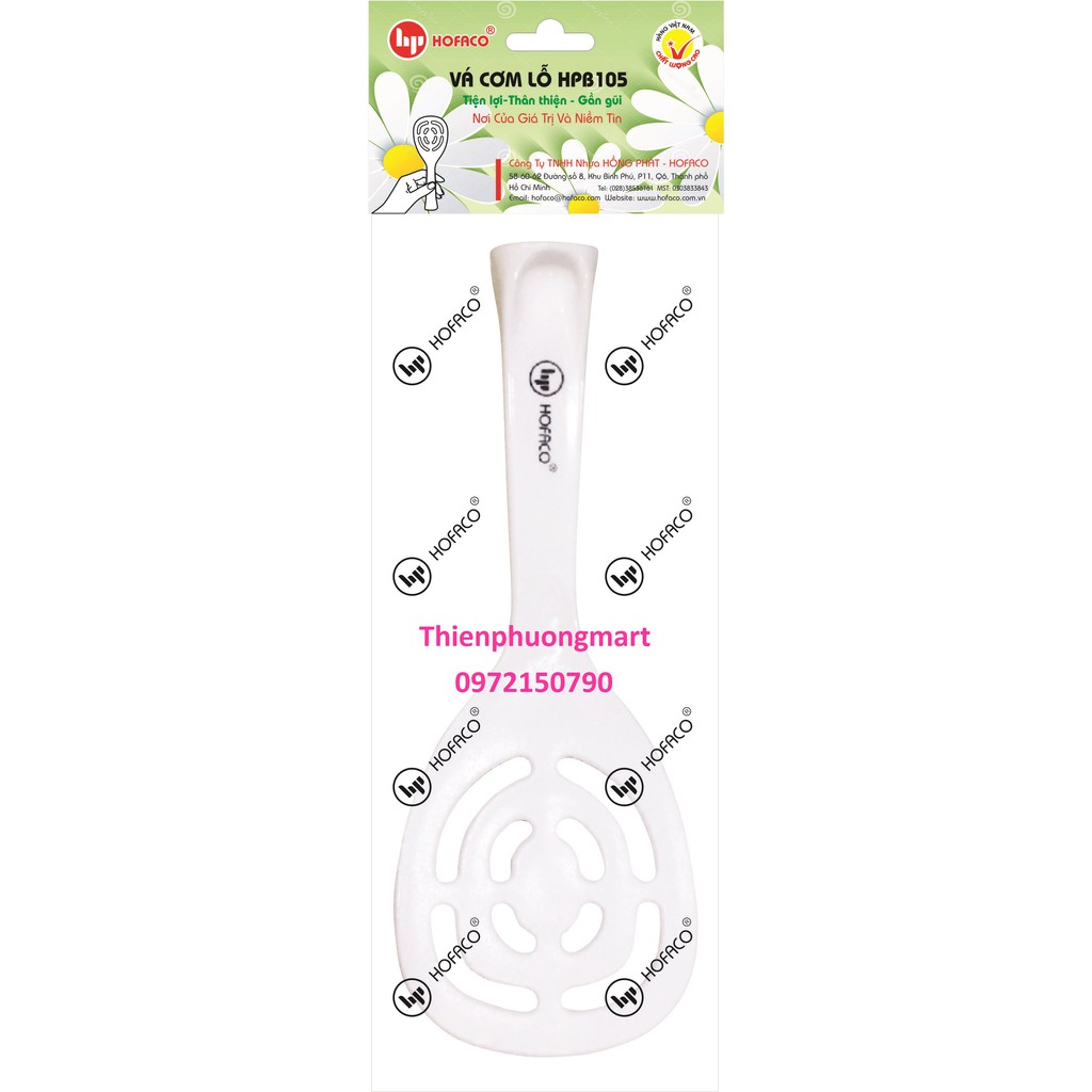 Muỗng xới cơm Hofaco an toàn, tiện lợi – Vá cơm lỗ HPB105 – Thìa múc cơm chống dính hình trụ đứng:❤️ Sản phẩm của công ty TNHH Nhựa Hồng Phát và được tin dùng ở Việt Nam