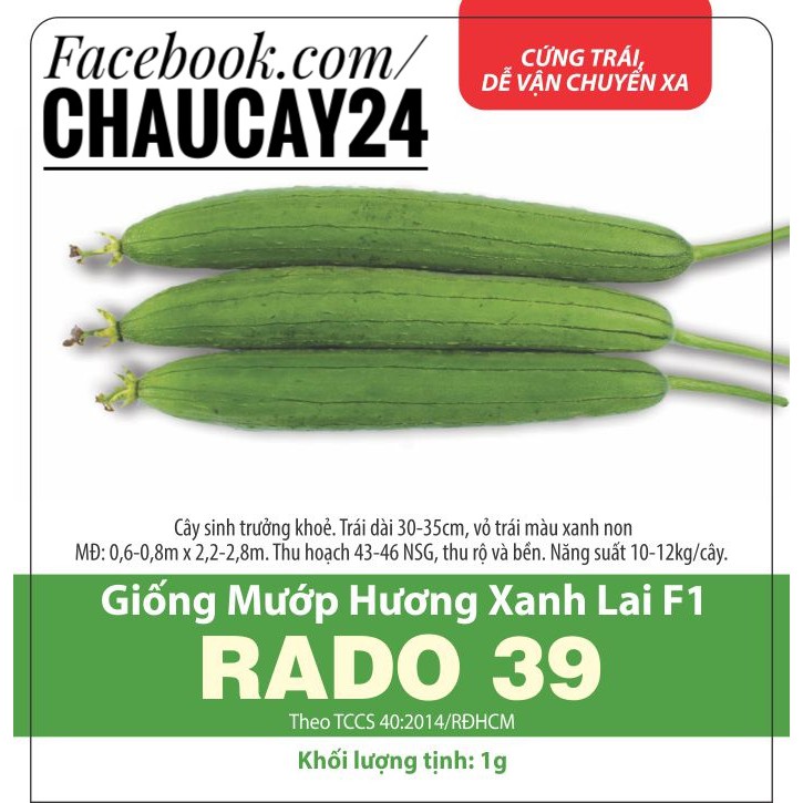 Nhà cửa & Đời sống > Làm vườn > Hạt giống & chất hỗ trợ trồng cây || Mướp Hương Xanh Lai F1 (1 gr) Hạt Giống Dễ Trồng, Thơm, NgọtCòn hàng
