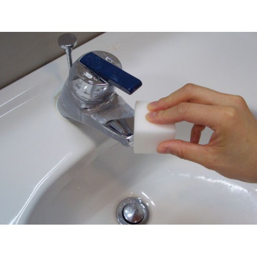 Không cần dùng chất tẩy rửa, chỉ cần thấm nước, mút chùi kỳ diệu có thể chùi rửa sạch các vết bẩn, vết ố…trên các bề mặt thủy tinh, kính, gạch men, inox, nhựa. Xốp tẩy rửa melamine set 2 cái KOKUBO được dùng để làm sạch vết ố vàng, loại bỏ nấm mốc, xóa bỏ vết xước trên nhiều bề mặt khác nhau.*Các bước sử dụng sản phẩm:
