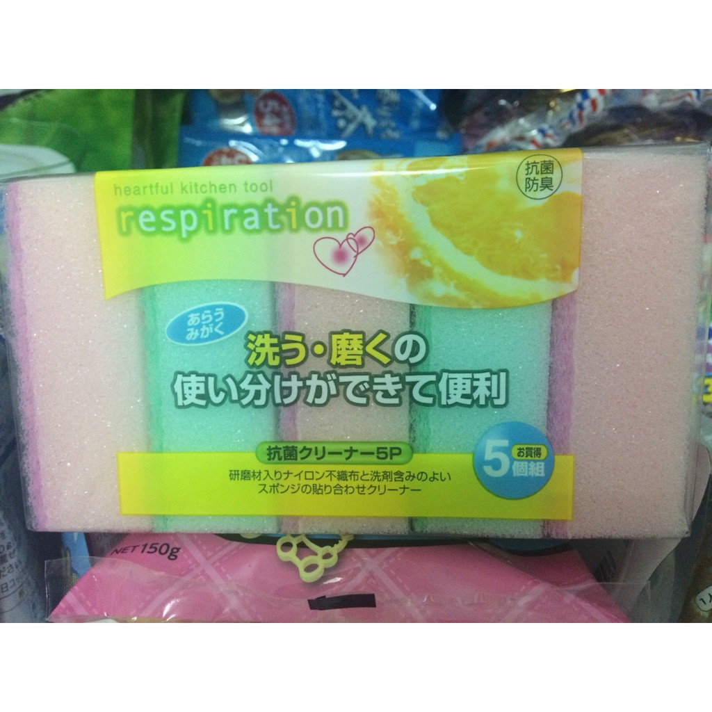 Set 05 miếng xốp rửa bát có 01 mặt ráp Nhật - 1 mặt mút giúp công việc rửa sạch bát, đĩa sạch và nhanh chóng hơn. Với thiết kế nhiều màu sắc, mang đến cho căn bếp của bạn sự tươi mới. Sản phẩm là sự lựa chọn thông tin được sản xuất tại Nhật Bản được các bà mẹ Nhật và nhiều quốc gia khác tin dùng.