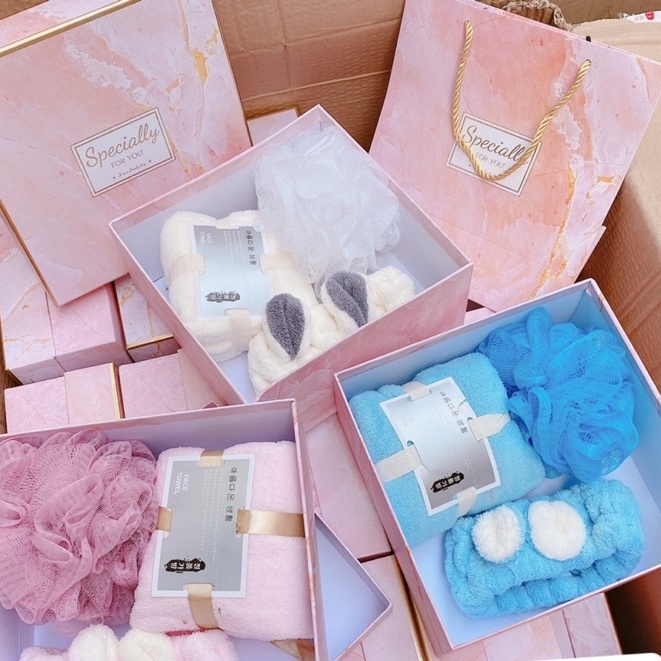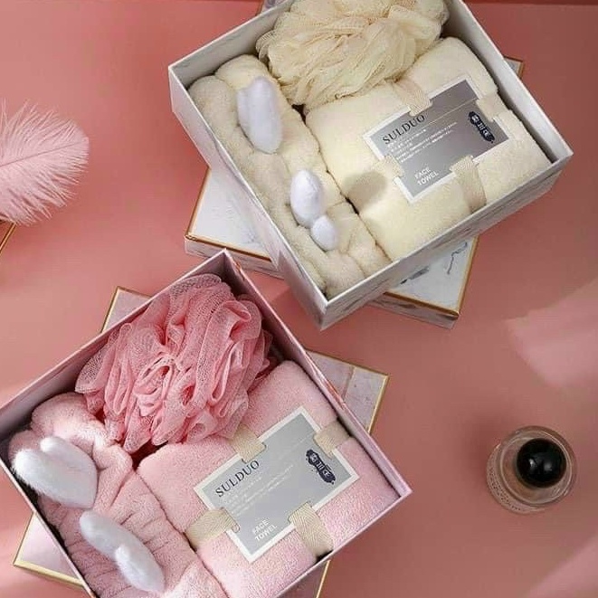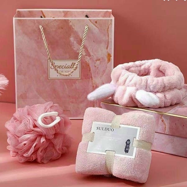 Nhà cửa & Đời sống > Đồ dùng phòng tắm > Khăn mặt, khăn tắm, áo choàng tắm > Khăn tắm || MVP0427 Sét 3 món Băng đô tai thỏ Bông tắm Khăn tắmCòn hàng