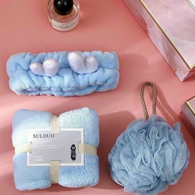 Khăn tắm Hàn Quốc - Khăn tắm set 3 sản phẩm Sulduo (khăn mặt,bông tắm,băng đô) - Khăn tắm Hàn Quốc