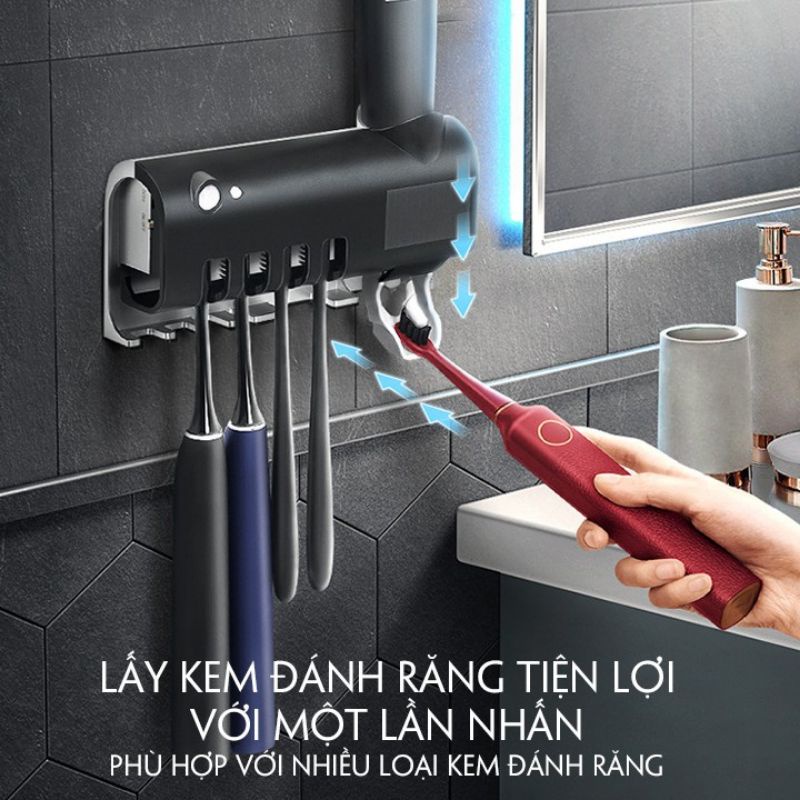 - Giá treo bàn chải đánh răng được trang bị công nghệ khử khuẩn bằng tia UV diệt tới 99% các loại vi khuẩn theo tiêu chuẩn tiên tiến của Hoa Kỳ