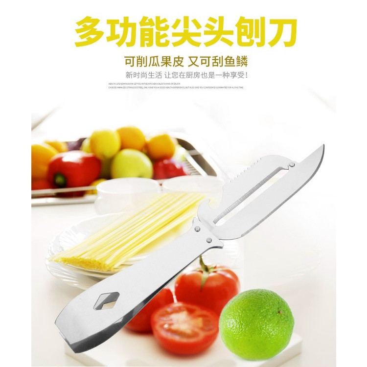 Dao bào inox - là bạn đồng hành lý tưởng cho người nội trợ trong việc cắt, gọn, bào trái cây, rau củ...5 IN 1: Cắt gọt 1 lưỡi- cắt gọt 2 lưỡi- cưa- khui nắp hộp - khui bia- mũi nhọn ...